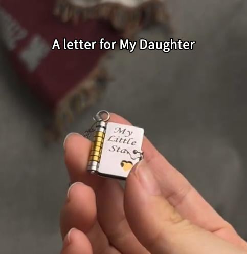 Denne unike anhengere er designet som en liten bok som åpner seg, og inneholder et hjertelig budskap til datteren din – et symbol på hennes livshistorie og det ubruttbare bandet mellom dere! Den lille stjernen på bokhyllen legger til en magisk touch, og gjør anhengere til et kjært minnesmerke som datteren vil elske for alltid.