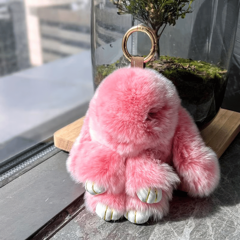 - Fuskepels av høy kvalitet: Nøkkelringen er laget av førsteklasses fuskepels, noe som sikrer holdbarhet og mykhet som etterligner ekte kaninpels uten å skade dyr.